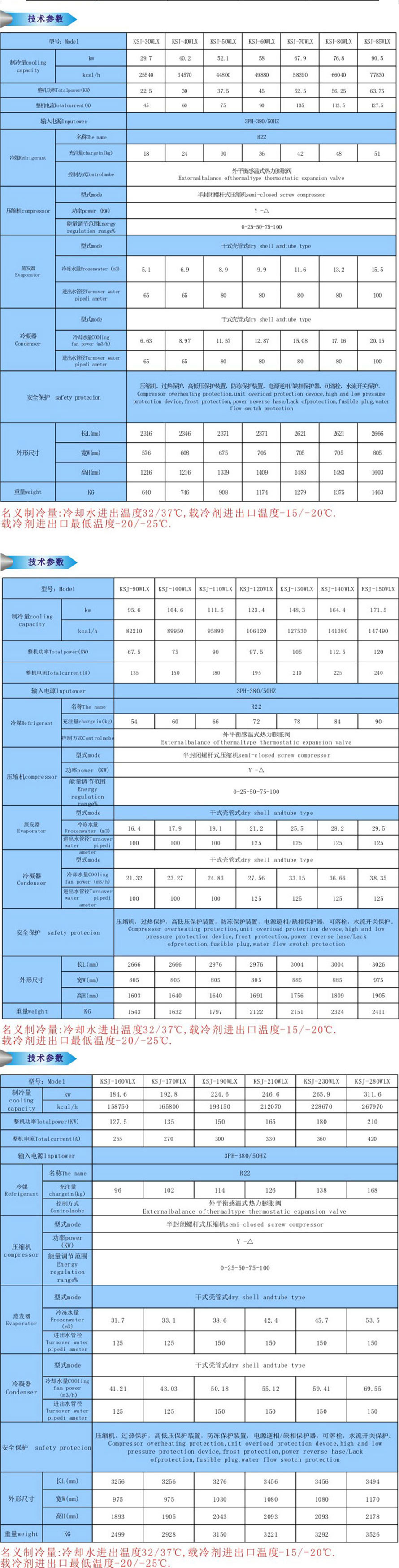 可提供-5℃~-35℃低溫載冷劑;制冷量范圍12KW-2000KW。載冷劑可為乙二醇或氯化鈣水溶液(蒸發(fā)器防腐設(shè)計)。