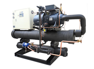 水冷冷水機,又可以分為開放式,密封式(有的稱為箱型)和螺桿式. 先要申明,水冷型的冷水機,都要另外加裝冷卻水塔和水泵,用以抽取熱水散熱.才能達到效好的冷卻效果. 開放式的冷水機,還要另外裝一個水箱,密封式就不必了,因為他自身內(nèi)置了一個水箱.開放式一般會安裝在車間外某個地方,他檢修方便,但因為不夠美觀,所以就產(chǎn)生了密封式的水冷型冷水機,因為它是一個箱體的結(jié)構(gòu),所以比較受歡迎. 但是如果您對制冷量的要求非常大的話,就要選用螺桿式的冷水機了,此時我們一般會稱之為冷水機組,大部分的廠家,如果您對冷水機壓縮機的要求達到100HP以上時,他們會建議您用螺桿式的冷水機.