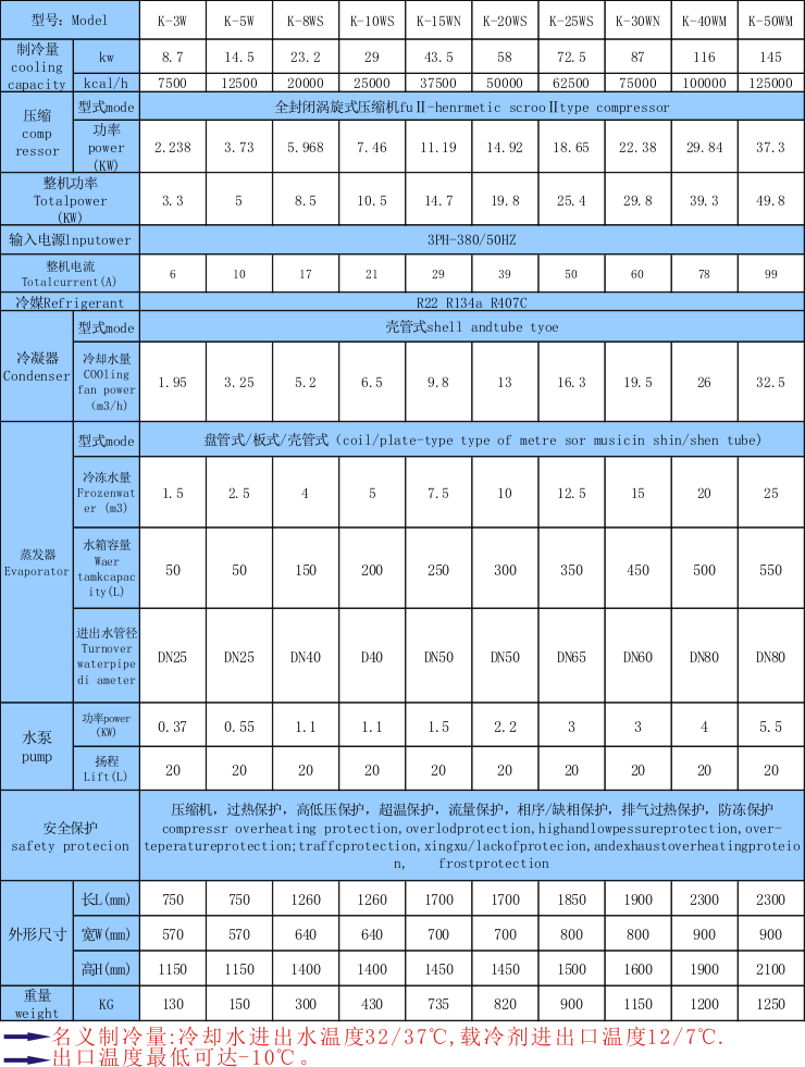 8.水冷及風(fēng)冷式規(guī)格齊全(功率:3HP-300HP,制冷量從600W至34800W)專門設(shè)有適合各行業(yè)機(jī)械設(shè)備配套之機(jī)型,可按客戶工藝要求制造。