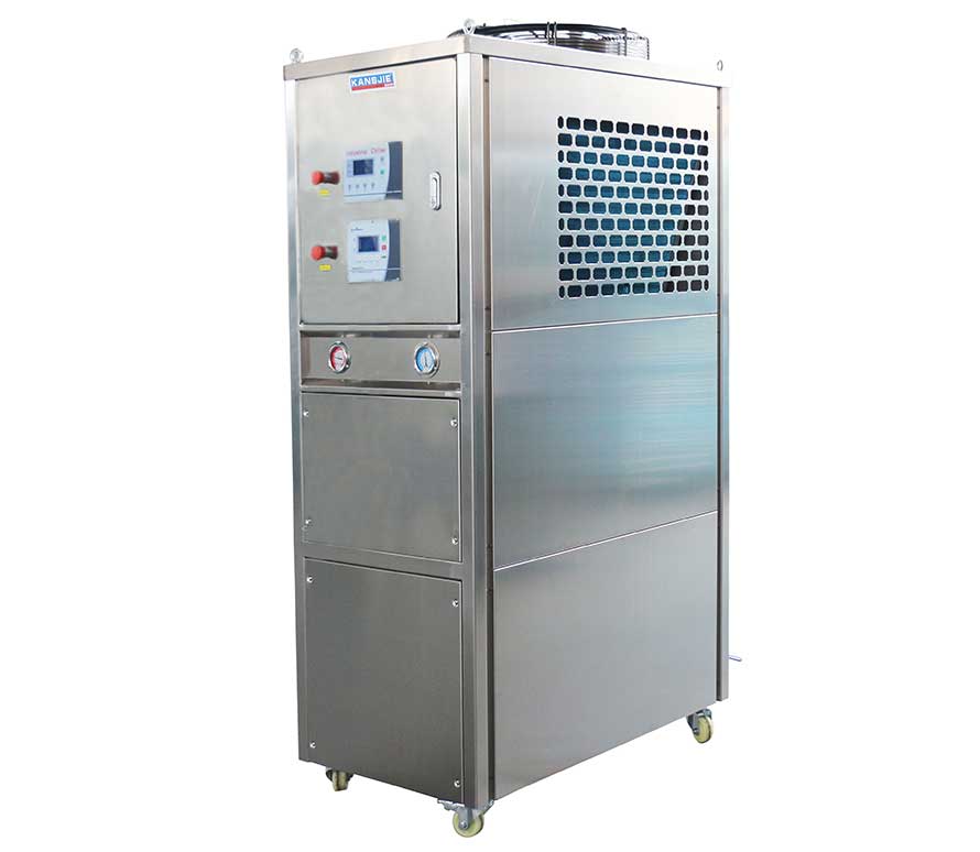 風(fēng)冷式雙溫雙控制冷機(jī)組通過風(fēng)扇以空氣為冷凝方式的控溫設(shè)備。